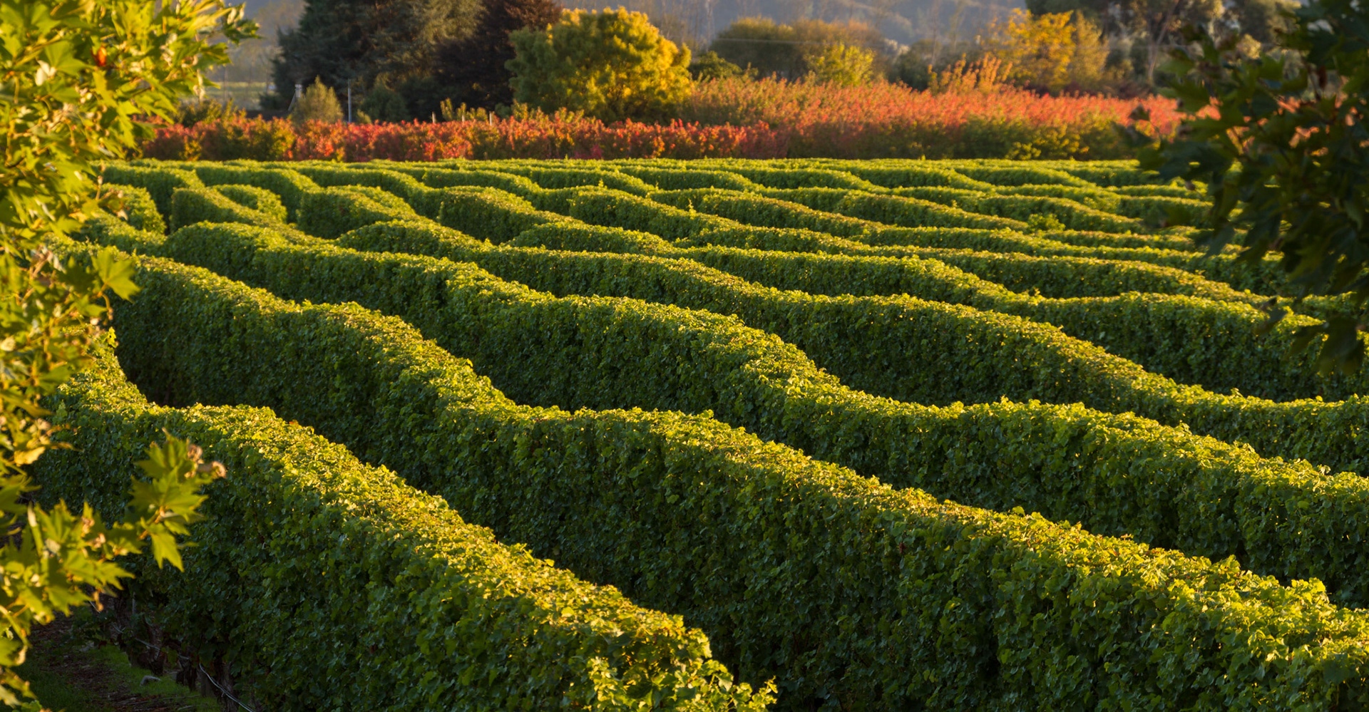 Neatly trimmed vineyards at dawn near Renwick: Marlborough